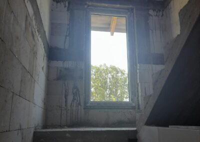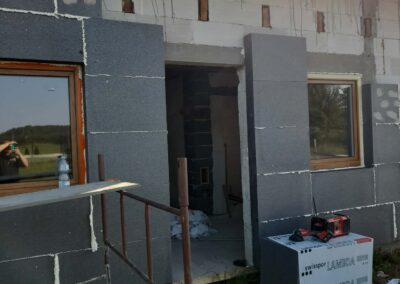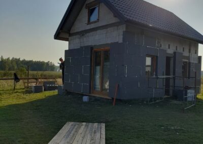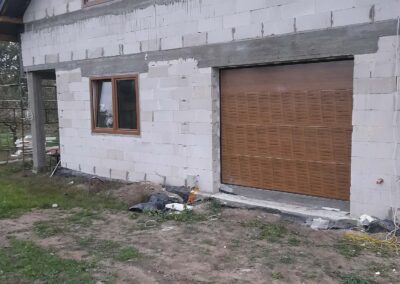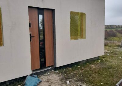 Zamykamy budynek poprzez montaż okien, drzwi zewnętrznych oraz bramy garażowej. Obiekt jest zabezpieczony i gotowy do rozpoczęcia prac instalacyjnych i wykończeniowych.