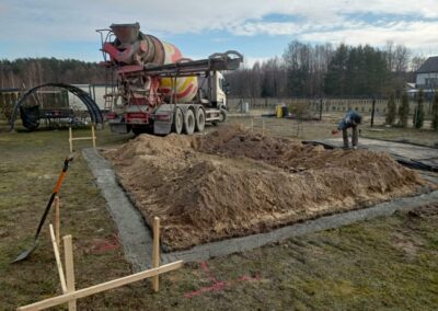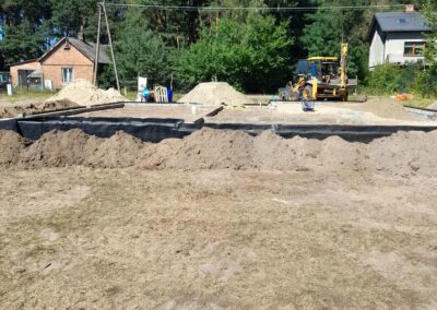 Przygotowujemy teren pod budowę oraz wykonujemy wykopy, ławy lub płyty fundamentowe wraz z izolacją przeciwwilgociową i termiczną. Zapewniamy solidne i trwałe posadowienie budynku.